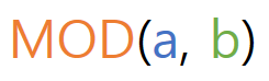MOD() 함수는 인자가 2개이며, a를 b로 나눈 나머지를 구합니다.