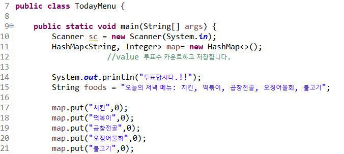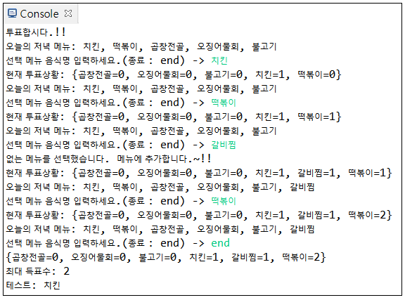 HashMap 예제1: 메뉴 투표하기