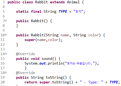 3라인 Rabbit 클래스는 Animal 클래스의 상속을 받는다.