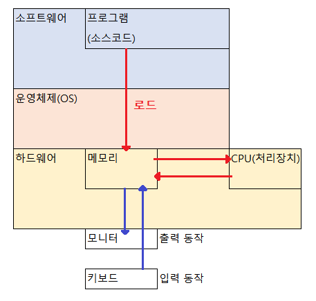프로그램은 운영체제를 통해 메모리에 기계어로 로드되고, CPU에 의해 실행된 후 메모리에 다시 저장된다.