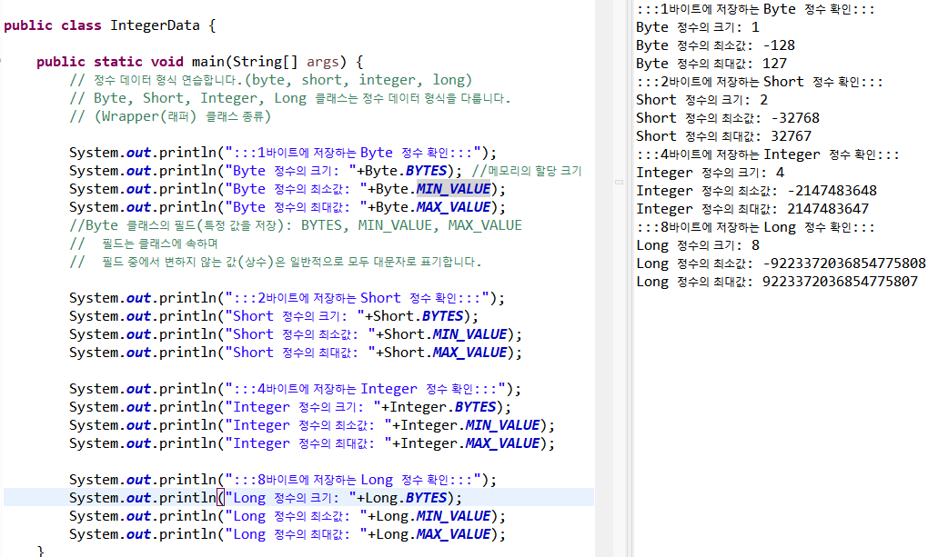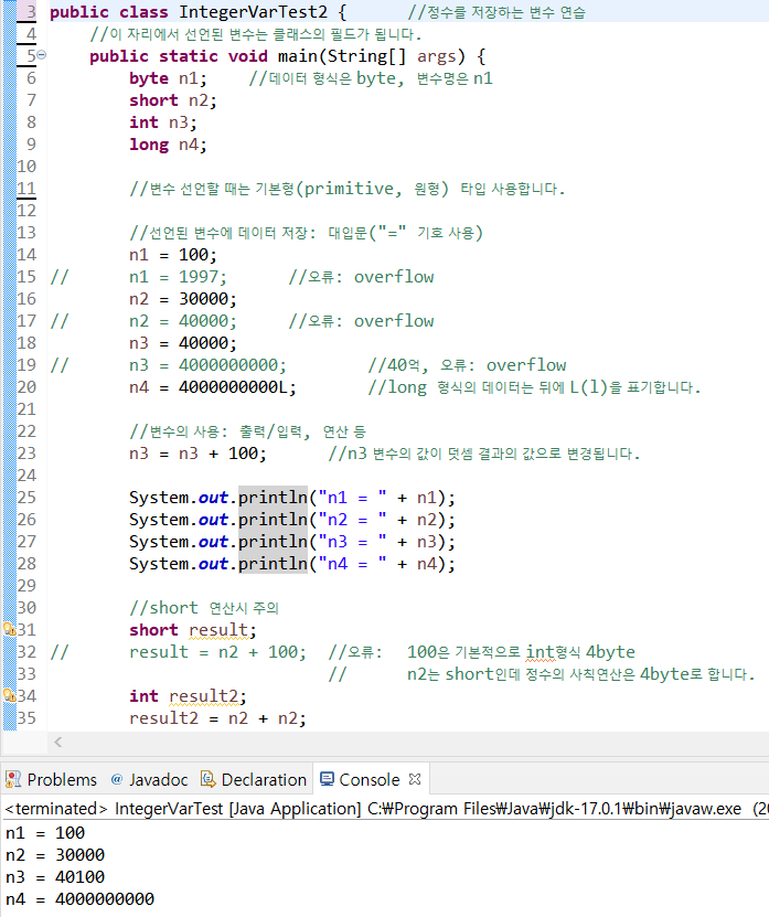 정수는 int가 기본형이다.