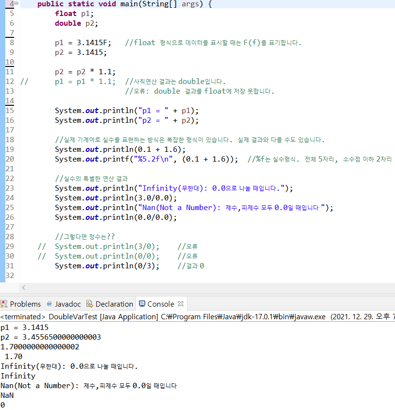 실수는 double이 기본형이다.