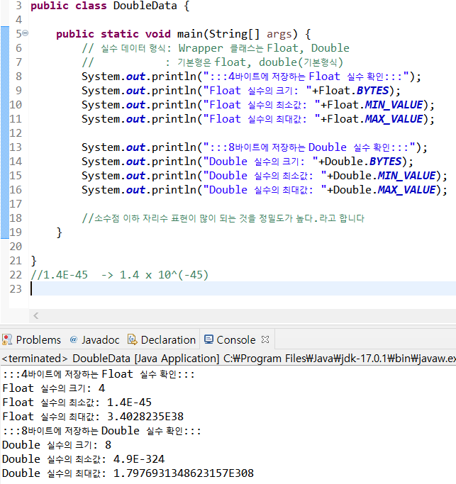 즉 double형이 float형보다 정밀도가 높다.