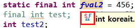 11라인 static final 변수 fval2는 글씨체가 바뀌고 굵어졌다.