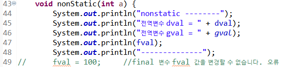 static영역이 아닌 nonStatic() 메소드 안에서도 static변수인 gval을 사용할 수 있다.