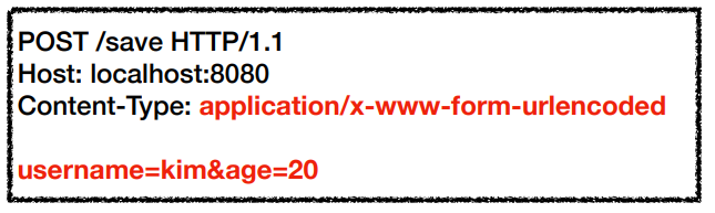 - form의 내용을 메시지 바디를 통해서 전송합니다. (key=value, 쿼리 파라미터 형식)