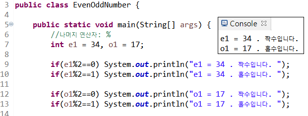 홀수와 짝수(나머지 연산자 %)