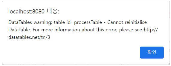옵션 설정한 DataTable을 반복해서 초기화하자 오류가 발생했습니다.